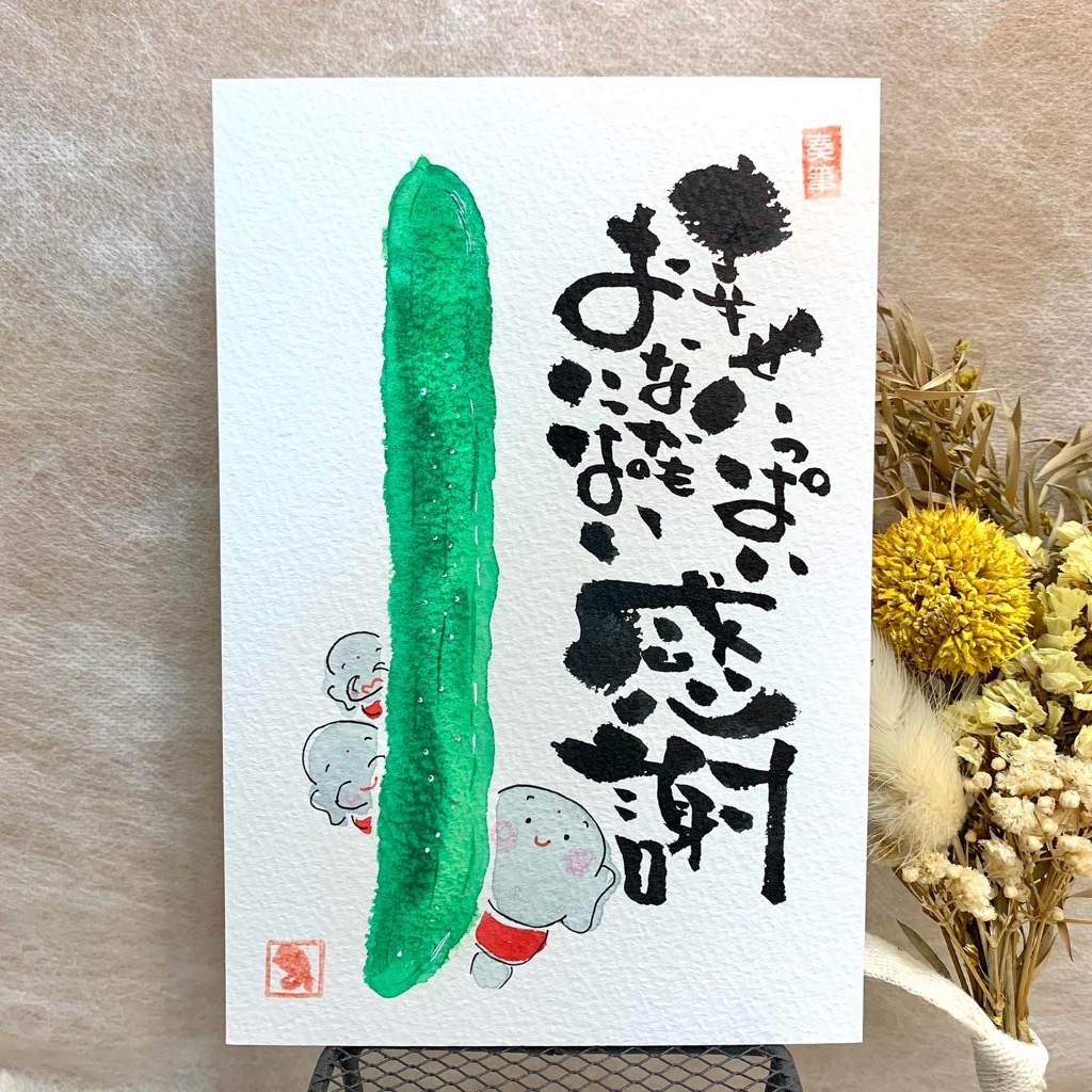 きゅうりの横にメッセージも添えてこの絵葉書を送りました。
